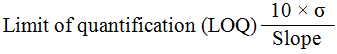Where σ is standard deviation and slope of the calibration curve of respective drug.