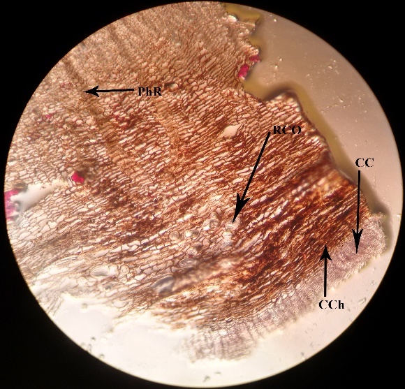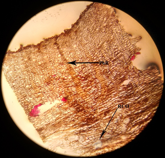 Few dried barks were soaked in water for sometimes till get soften and then cut into slices with the help of a sharp blade. Thin transverse sections were taken in a watch glass and treated with chloral hydrate solution. The sections were stained with staining reagents like a mixture of phloroglucinol and concentrated hydrochloric acid, safranin separately. Glycerol was used as mounting fluids for stained sectioned and observed under microscope and photomicrographs were taken with Leica Digi 3 Photomicrographic unit at 10X magnification. Powdered materials of barks were sieved through sieve no. 60. A pinch of powder was taken on a glass slide, treated with chloral hydrate solution, washed with water and mounted with glycerol after staining with different reagents as mentioned above. Then slide was observed under a microscope using 10X and 40X magnification for different characters and photographs were taken [10].