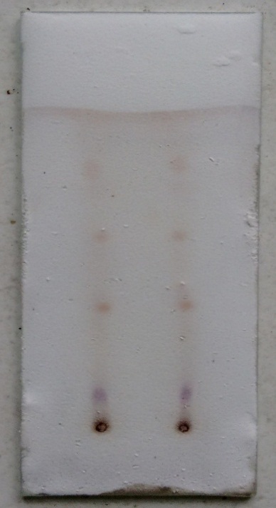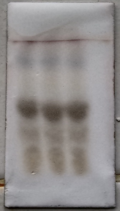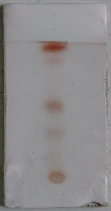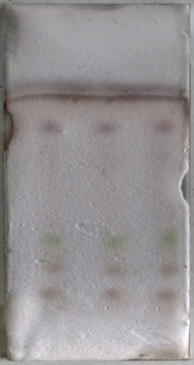 | Ethyl acetate | Chloroform: Ethyl acetate: Methanol = 4:3:3 | 4 | 0.10, 0.29, 0.58, 0.85 | 10% H2SO4 |