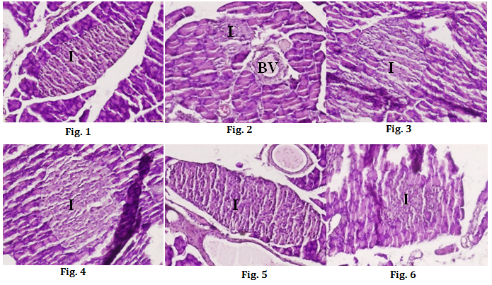 Fig. 1-6: Histopathological changes occurred in rats by the pretreatment with aqueous extract of L. microphyllum
