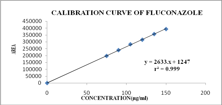 Fig. 5: Calibration curve of fluconazole (75-150 µg/ml)