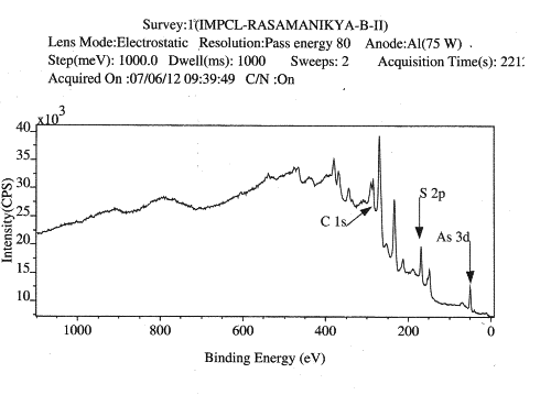 Fig. 3: Typical ESCA (XPS), the observed high-resolution narrow scans for both As 3d and S 2p are illustrated in tables 2 and 3.