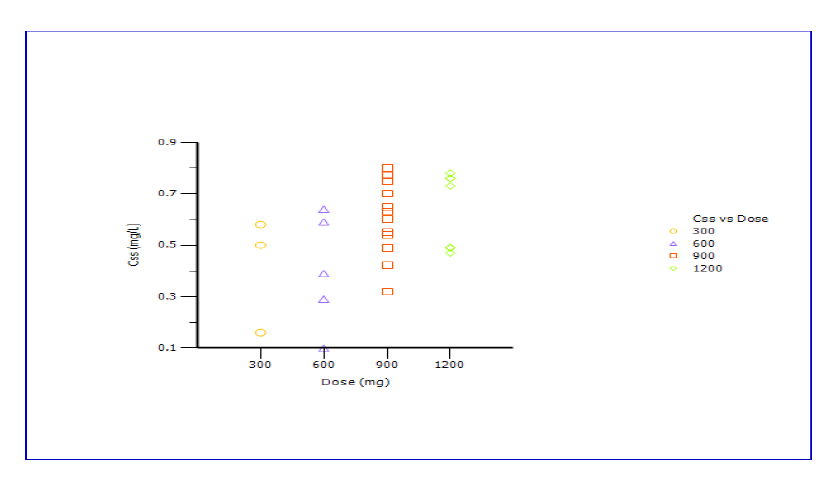 Fig. 3: The graph of serum lithium concentrations (mg/l) versus dose (mg)