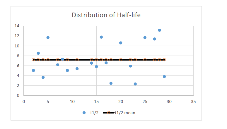 The distribution of calculated pharmacokinetic parameters compared with mean were explained by the graph in fig. 4-8.