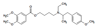 Mebeverine hydrochloride (fig. 1) is a white crystalline powder having a molecular formula C25H35NO5HCl, molecular weight 466 and melting point 105-107ºC. It is freely soluble in water and ethanol (96%), while practically insoluble in diethyl ether[1]. IUPAC name of Mebeverine hydrochloride is 3,4-Dimethoxybenzoic acid 4-[ethyl[2-(4-methoxy phenyl)-1-methylethyl]amino]-butyl ester. It is a direct antispasmodic acting mainly on the smooth muscles of the gastrointestinal tract and particularly effective against the colonic spasm[2]. Mebeverine hydrochloride is widely used as a relaxant agent for the treatment of gastrointestinal spasmodic disorders such as irritable bowel syndrome [3].