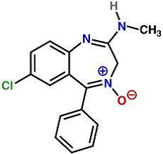 Chlordiazepoxide (fig. 2) is a first among the class of benzodiazepines to be used clinically as anti-anxiety drug [4]. Chlordiazepoxide is a white crystalline powder possessing solubility in water, whose IUPAC name is (7-chloro-2(methyl amino)-5-phenyl-3-H-1,4 benzodiazepine 4-oxide). Chlordiazepoxide mainly acts on limbic system and ascending reticular formation in the central nervous system. It binds to stereo specific benzodiazepine binding sites on GABA receptor complexes at several sites within the central nervous system including the limbic system and reticular formation. The binding will facilitates GABA mediated chloride channel opening and produce hyperpolarisation. This will increase the concentration of inhibitory neurotransmitter GABA and chloride ions in the CNS and decreases firing rate of neurons [5]. Mebeverine hydrochloride (135mg) and Chlordiazepoxide (5mg) is commercially available as capsules (trade name: MEVA C).