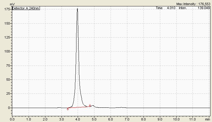 Suitable wavelength for the HPLC analysis was determined by recording UV spectrums in the range of 200-400 nm for individual drug solutions of Chlordiazepoxide and Mebeverine. Suitable wavelength selected for simultaneous estimation is 240 nm (fig. 3-4).