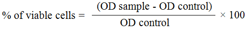 After the completion of treatment with tea oil at different concentrations, the treated cells such as PBLs and MCF-7 cells were washed with PBS (1X) for three times using centrifugation (2200 rpm for 3 min/wash) and the cells were prepared for cytotoxicity study. The cell viability was estimated quantitatively by nonradioactive, colorimetric assay systems using tetrazolium salt, 3-[4,5-dimethylthiazol-2-yl]-2,5-diphenil-tetrazolium bromide (MTT) according to the method of the previous report [17]. The percentage of proliferation was calculated by using the following equation: