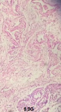 The histopathological studies of nasal mucosa were performed to determine the biocompatibility of the developed formulations of G4PPID and G5PPID on the nasal mucosa. Five samples of goat nasal mucosa of even thickness (0.3 mm) were subjected to the investigation of any pathological changes produced by developed formulations. The first sample was positive control and treated with isopropyl alcohol for 1 h. The second sample was negative control and was treated with only PBS pH 6.4 for 1h. Besides this, third, fourth and fifth samples were treated with G4PPID, G5PPID and simple donepezil solution respectively in the concentration of 5 mg/ml for 1 h.
