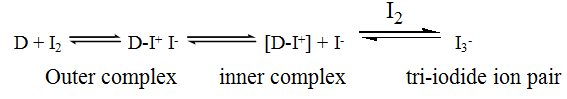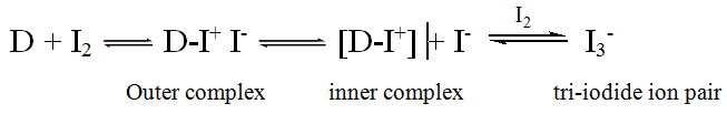 1,2-Dichloroethane was found to be an ideal solvent in case of iodine, because it is favourable for the formation of tri-iodide ion pair (inner complex). Dichloromethane and chloroform produced lower absorbance readings. Polar solvents such as acetonitrile and alcohols were found to be unsuitable as their blanks with iodine gave high absorbance. It is obvious that, the rate of transformation of outer complex to inner complex is in the order of 1,2-dichloroethane>dichloromethane>chloroform [31]. There is actually a considerable decrease in the energy of activation along with an increased dielectric constant εr of the medium; in 1,2-dichloroehane (εr = 10.2) the transformation of inner complex proceeds much faster than that in dichloromethane (εr = 9.1) and chloroform (εr = 4.8). This is in support of the proposed three-steps mechanism. In fact, the resulting charged transition states in going from the outer complexes to the inner ones (as the rate determining step of the mechanism) are expected to be more stabilized in 1,2-dichloroethane because of higher solvating ability and relative permittivity than dichloromethane and chloroform [32].