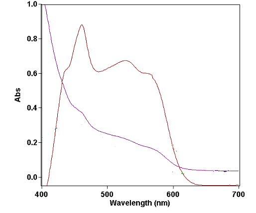 The dissociation of the (D–A) complex was promoted by the high ionizing power of the polar solvent and the resulting peaks in the absorption spectra of VOR-acceptor reaction mixtures were similar to the maxima of the radical anions of the acceptors obtained by the iodide reduction method [29].