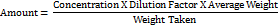 By substituting the concentration of sample solution in the formula which was mentioned in the methodology the amount was found as follows.