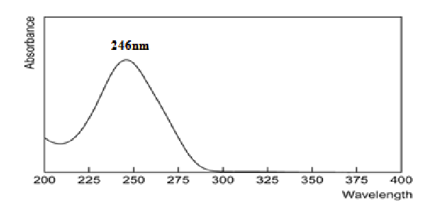 By diluting the stock solution, 10µg/ml solution was prepared and the absorbance was measured at 246 nm against the blank. The result was shown in table 5.