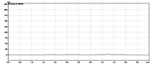 Fig. 5: Chromatogram for specificity for the solvent water-acetonitrile (20: 80)
