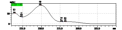 Fig. 4: LDP UV Spectrum from 210 to 350 nm. Optimum wavelength of 254 nm selected