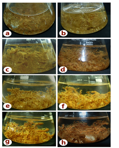 e to h - SA treated adventitious root (e, 50 µM/l; f, 100 µM/l; g, 150 µM/l; h, 200 µM/l)