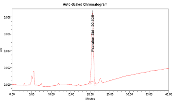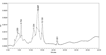 Baskaran and Jayabalan [26] performed HPLC analysis of psoralen from both in vitro and ex vitro grown P. corylifolia plants and reported that the psoralen content was high in vitro grown plants when compared to ex vitro grown plants. The analytical HPLC experiments was performed in Methanol: Water (50:50) at 0.8 ml/min-1 flow rate and the injection volume was set as 20 µl. HPLC analysis of psoralen was performed for in vitro ex vitro grown roots and seeds part of P. corylifolia plants [27].