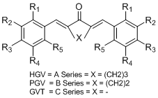 Heksagamavunon (HGV), pentagamavunon (PGV) and gamavuton (GVT) are mono-ketone analogue compounds which have been successfully synthesized and patented. Basically, they are curcumin analogues [1] that have biological activities including anti-inflammatory, antioxidant, and antibacterial [1, 2]. The basic differences of the three compounds refer to the carbonyl ketone group that connects two rings of benzene aromatic (fig. 1). The analogue compounds were synthesized using aldol condensation [1, 3].