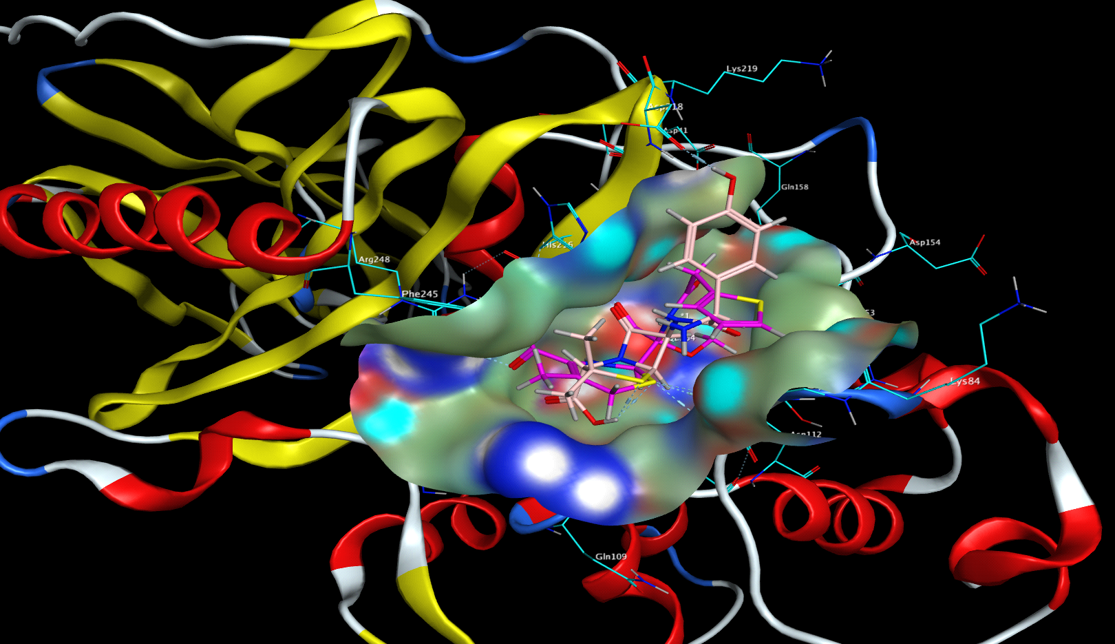 Fig. 5: Binding surface and ligand interaction of compound A113 with 3MZE