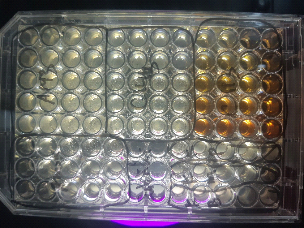 Fig. 8: The result dilution test of A113 against S. aureus (A), E. coli (B), B. subtilis (C)