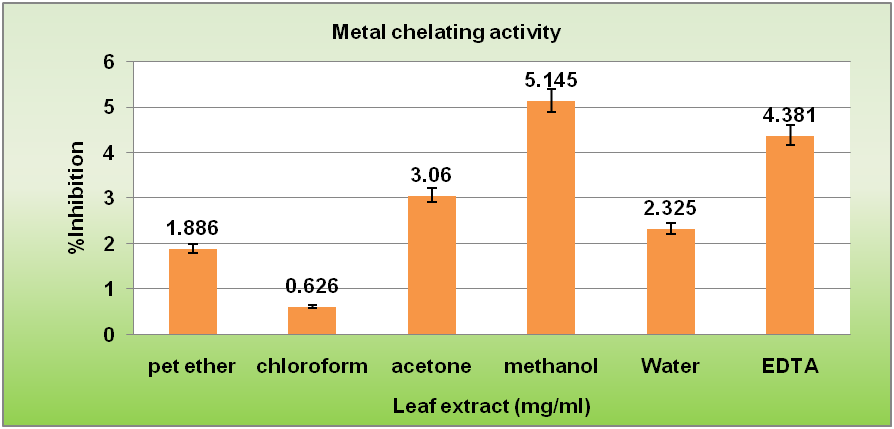 Fig. 3: Metal chelating activity of leaf extract of L. Laevigata, each value in the table is represented concentration based as mean±SEM (n=4)
