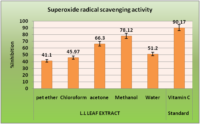 Fig. 5: Superoxide radical activity of leaf extract of L. Laevigata, each value in the table is represented concentration based as mean±SEM (n=4)