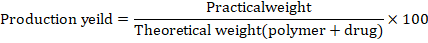 All the batches of dried microspheres were accurately weighed separately and percentage yield is calculated by using the given equation.
