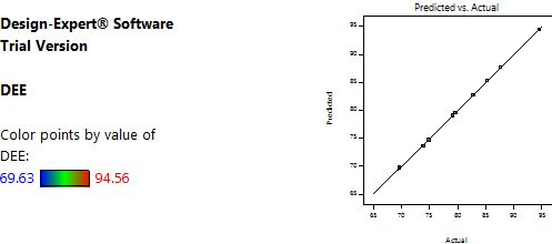 Fig. 1: Linear correlation plot containing DEE (%) between the actual and the predicted values