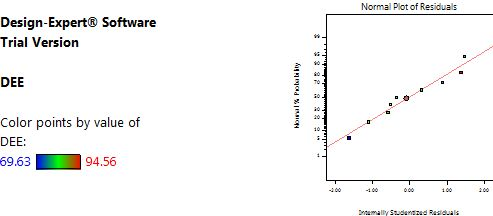 Fig. 2: Normal residual plot containing DEE (%) showing the scatter of the residuals versus predicted values