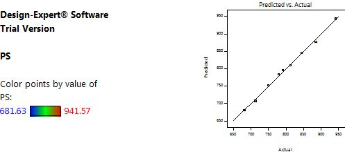 PS (µm) = 783.74+62.4X1-68.93X2-4.87X1X2− 31.44X12−7.36X22 (R2= 0.9970; F value = 198.27; P<0.05).