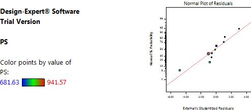 Fig. 4: Normal residual plot containing PS (µm) showing the scatter of the residuals versus predicted values