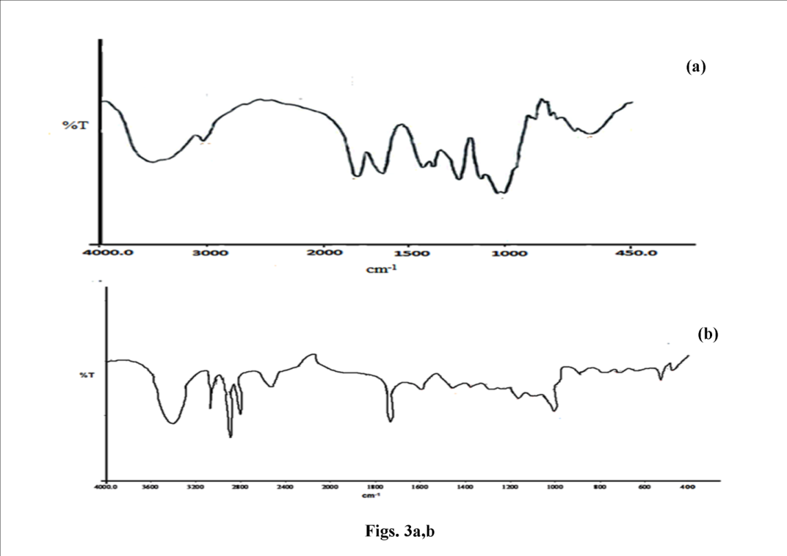 Fig. 3(a, b): FT-IR spectrum of (a) gt and (b) gt-cl-poly(aa-ipn-aam+mma)