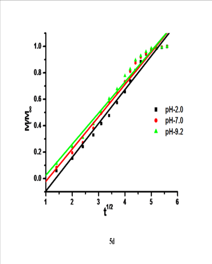 Table 3: Diffusion exponent, Gel characteristic constant and diffusion coefficient of pantoprazole sodium release behavior through loaded gt-cl-poly (aa-ipn-aam+mma)