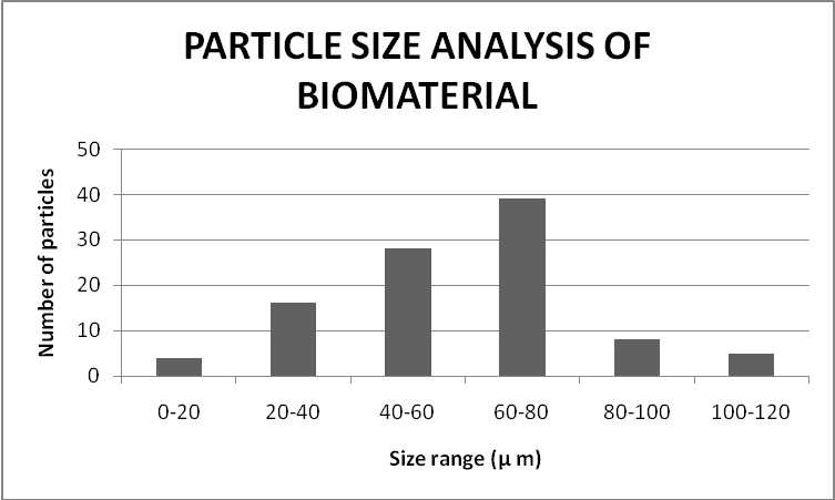 The particle size distribution of biomaterial was determined and graph was plotted between size range and frequency. Figure 1.