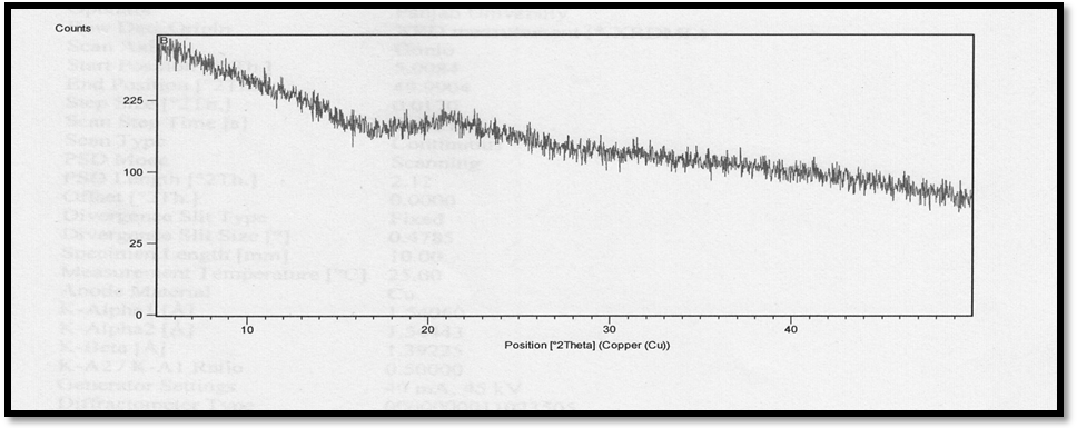 The X-ray diffraction pattern of biomaterial obtained from Phaseolus vulgaris did not show any characteristic peak, which indicates amorphous nature. Figure- 4