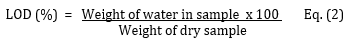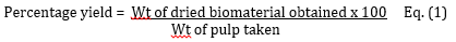 Weight loss on drying was determined for an appropriate quantity of biomaterial at 105 °C for 2 hour and percentage loss of moisture on drying was calculated using equation-2.