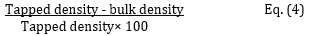 Compressibility index gives the important property of powder it is also known as cars index. It can be calculated by using equation-4.