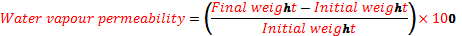 The thickness of coated FMT was measured using Vernier Calipers, Water vapour permeability was determined at 25 °C using desiccators containing calcium chloride for 72 h.