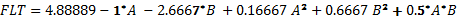 Fig. 3: Response surface plot showing an effect of independent variables (A and B) on response FLT (Y)