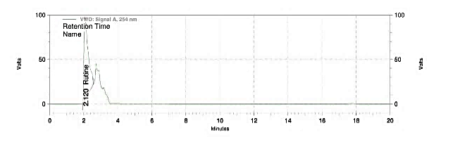 Standard Rutin and Vindoline (10 mg) were dissolved in 25 ml of the mobile phase. Similarly, 10 mg of leaf extract solution of Catharanthus roseus were dissolved in 25 ml mobile phase.