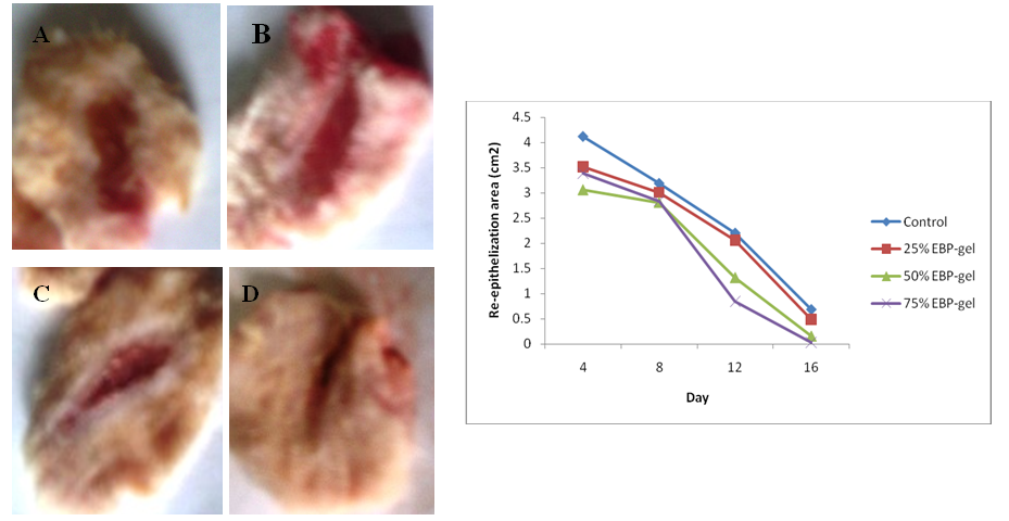 Table 1: Effect re-epithelization of EBP on area wound in each group of rats for 16 days