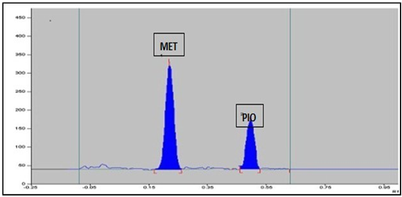 Twenty tablets were weighed and crushed to a fine powder. The quantity of powder equivalent to 500 mg MET, 60 mg GLZ and 15 mg PIO was weighed and transferred to a 100 ml volumetric flask. The solution containing 5 mg/ml MET and 0.6 mg/ml GLZ 0.15 mg/ml PIO. The solution was filtered through Whatmann filter paper number 41.