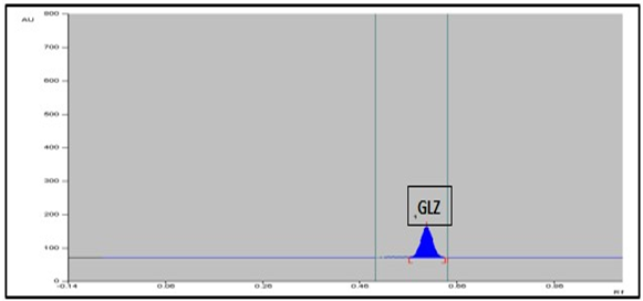 Chromatographic separation of the standard solution of MET, GLZ and was performed. Briefly, the spot of the standard solution was applied on TLC plates. The TLC plates were developed by linear ascending development by using various solvents such as acetone, benzene, chloroform, ethyl acetate, methanol and toluene. The experimental condition for the HPTLC method such as mobile phase composition and the wavelength of detection was optimized to provide accurate, precise and reproducible, compact, flat bands for simultaneous determination of MET, GLZ and PIO.