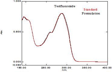 Fig. 2: Overlay UV absorption spectra of TEF standard and formulation
