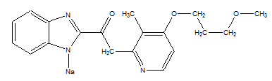 Rabeprazole sodium is chemically (RS)-2-[(4-(3-methoxy propaxy)-3-methylpyridin-2-yl] methyl sulphonyl)-1H-benzo(d)imidazole (fig. 1). Rabeprazole sodium is an antiulcer drug in the class of proton pump inhibitors. As anti ulcer drug, it is used in short-term treatment in healing and symptomatic relief of duodenal ulcers and erosive or ulcerative gastro esophageal reflux disease (GORD); maintaining healing and reducing relapse rates of heartburn symptoms in patients with GORD; treatment of daytime and nighttime heartburn and other symptoms associated with GORD; long-term treatment of pathological hypersecretory conditions, including Zollinger-Ellison syndrome and in combination with Amoxicillin and Clarithromycin to eradicate Helicobacter pylori [1].