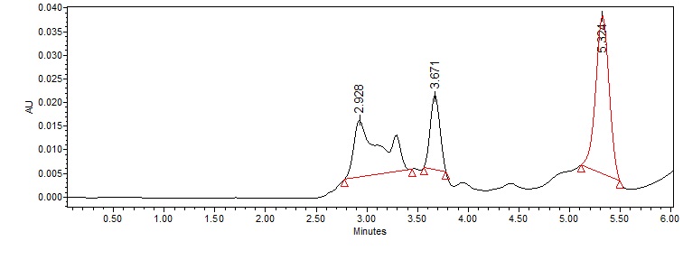 The column temperature was maintained as 25 °C. The detection was monitored at 245 nm and the run time was 8 min. The volume of injection loop was 10 µl; prior to injection of the drug solution, the column was equilibrated for at least 30 min with the mobile phase flowing through the system.