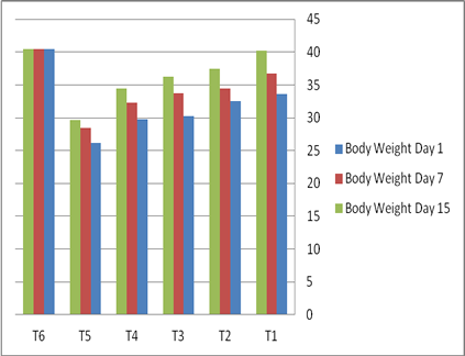 Loss of appetite and weight loss is one of the constitutional symptoms that come associated with rheumatoid arthritis. Results of measuring body weight for all treated groups found a significant difference between body weights of each groups immediately after induction of arthritis in animals. Moreover, there was a significant increase body weight in treated groups after day 15.