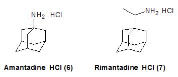 Fig. 2: Chemical structures of Amantadine 6 and Rimantadine 7