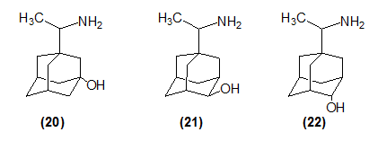 Fig. 6: Chemical structures of m-hydroxyrimantadine (20) and the equatorial (21) and the axial (22) epimers of p-hydroxyrimantadine