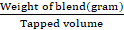 Bulk density = Weight of blend (gram)/Bulk volume of the blend